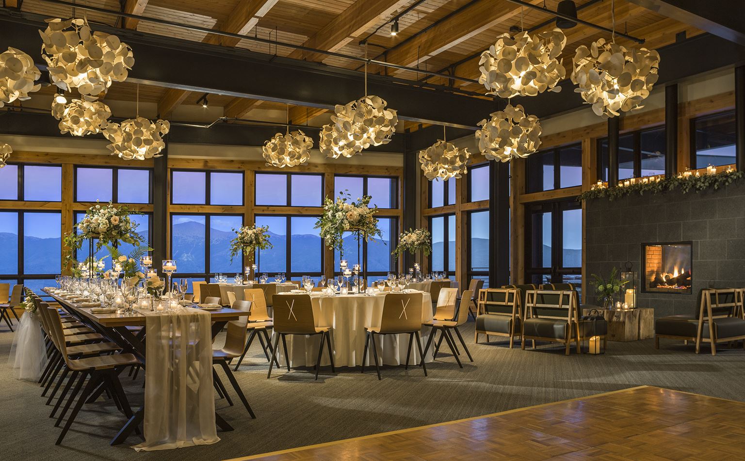 The Crystal Hills event venue on the summit of Bretton Woods and located in the stunning Rosebrook Lodge, is the winner of Hospitality Design magazine’s 2022 Annual HD Awards for event spaces. With mountain decor complementing the natural surroundings, this premier venue boasts breathtaking mountain views of New England’s highest peaks. Attendees enjoy enclosed transport up the mountain by way of the year-round, 8-passenger, Bretton Woods Skyway Gondola. The Crystal Hills venue is available for seasonal bookings from June through October.