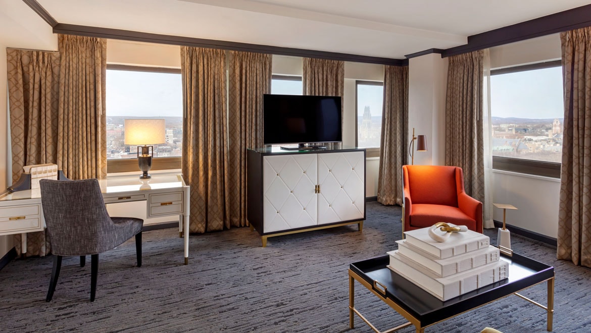 Discover the hotel rooms and suites that await you at Omni New Haven Hotel at Yale. Whether you’re traveling for business, solo adventures or family fun, you’re sure to find your ideal accommodations. Discover what makes us one of the best hotels in the New Haven area.